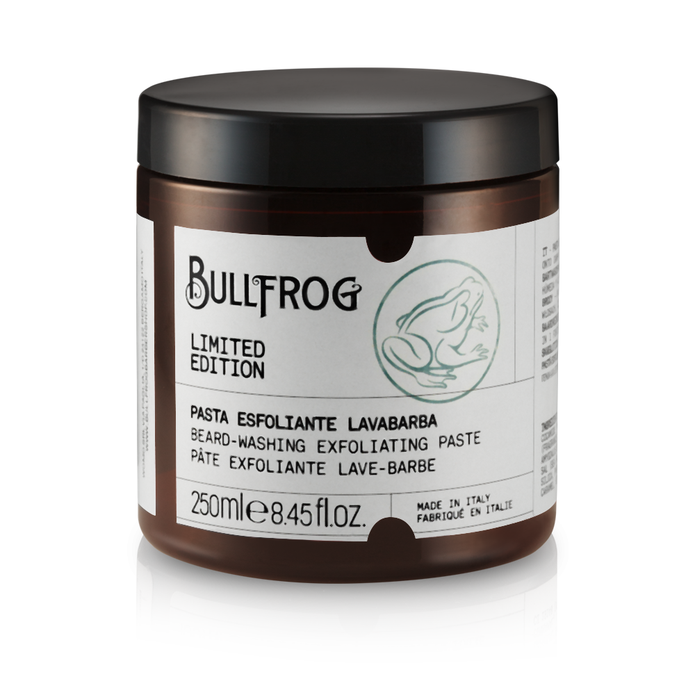 Acquista online la nuova Pasta esfoliante lavabarba Bullfrog, ideale per detergere in profondità la barba e ottenere un aspetto più lucido, morbido e ordinato.